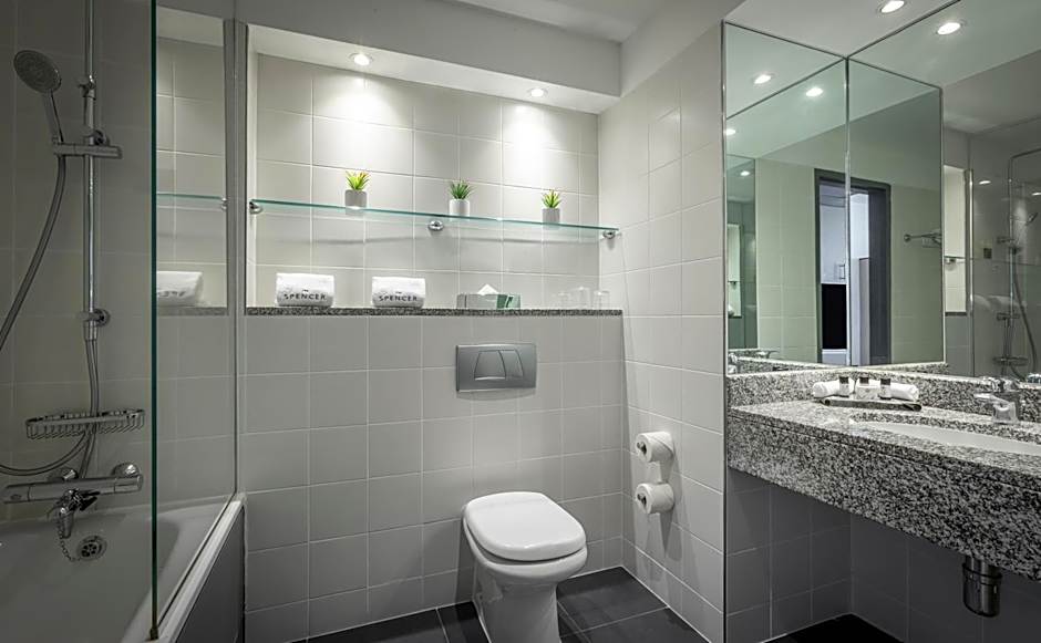 Newly refurbished, extra spacious, bright & airy bedroom with king-sized Spencer’s Sumptuous Bed for a Scrumptious Night’s Sleep. 50-inch smart TV with Chromecast. Enjoy the added luxury of robes and slippers in our deluxe rooms, along with complimentary use of our Spencer umbrellas.